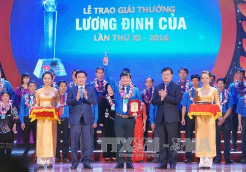 越南胡志明共青团中央11月27日在河内举行2016年第11次梁定果奖颁奖仪式。政府副总理王庭惠出席仪式。