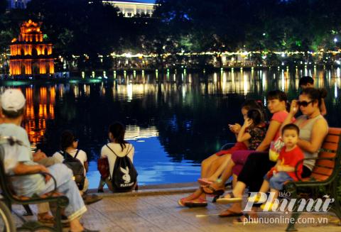 很多人喜欢跟朋友或者家人一起到还剑湖边游玩(图:phunuonline.com.vn)