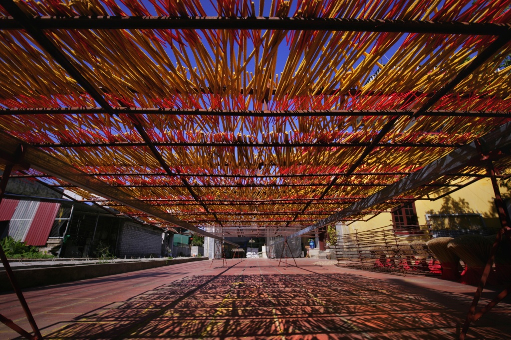 晴天到高村,游客还能亲眼目睹这个制香村独特的美景。数千束红白两色的香犹如一束束花迎风向太阳。院子里,一盘盘新香正在晾晒。在乡村秀丽的景色中,中药香在风中飘散,给人以惬意的时光,感受这块土地的韵味。