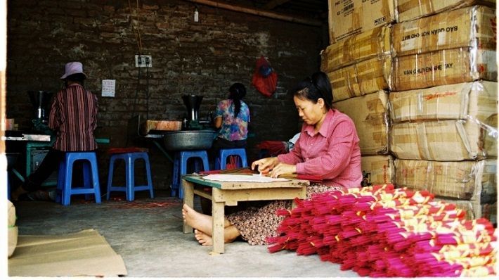 高村香生产全年进行,为村里及附近地区的600名劳动者创造就业。这一行不挑人,谁都可以做。全村年产量达近1000万炷。
