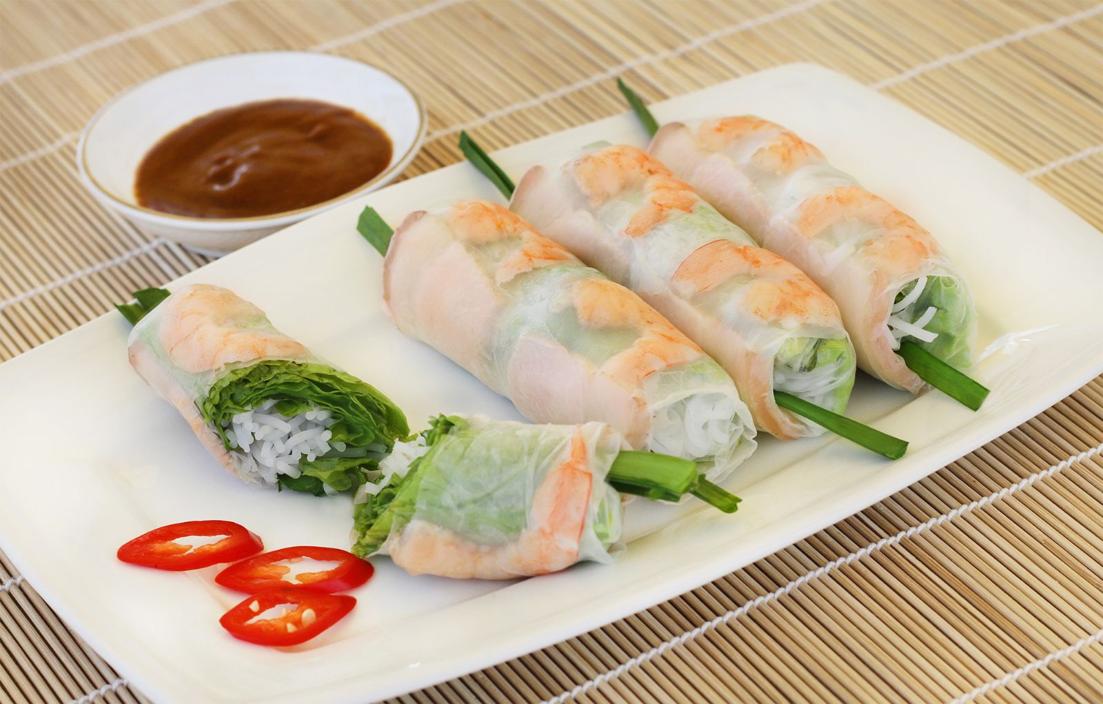一、卷粉(Gỏi cuốn):卷粉被视为越南最著名的菜肴。卷粉形状很象肉团,用粉皮裹青菜、碎猪肉、虾米或螃蟹肉等原料配着吃。一些地方还喜欢配着生菜和香花苣一起吃。南部吃卷粉的时候喜欢烤猪肉卷着青香蕉、杨桃,蘸着放落花生的酸甜鱼露吃。