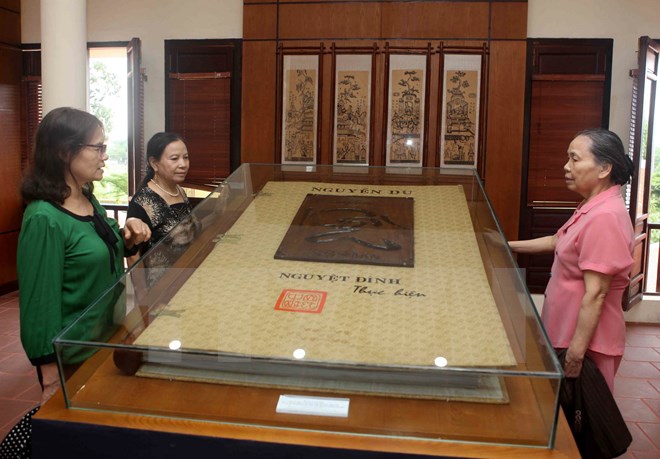 河静省文化体育旅游厅近日在该省宜春县仙田乡阮攸纪念馆举行文学遗产及《金云翘传》资料展。这是纪念世界文化名人阮攸诞辰250周年系列活动中的一项内容。