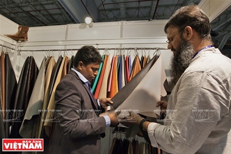 国际顾客在越南国际皮革展览会了解皮革原料