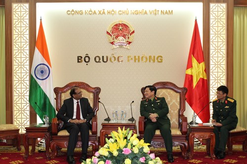 3月1日,印度国防部代表团礼节性拜会越共中央政治局委员、中央军委副书记、国防部长吴春历大将。