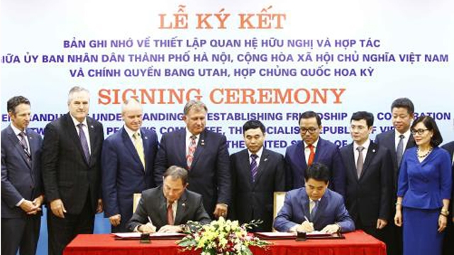 河内市人民政府主席阮德钟与犹他州州长卡里·赫伯特签署建立友好合作关系备忘录(图:因特网)