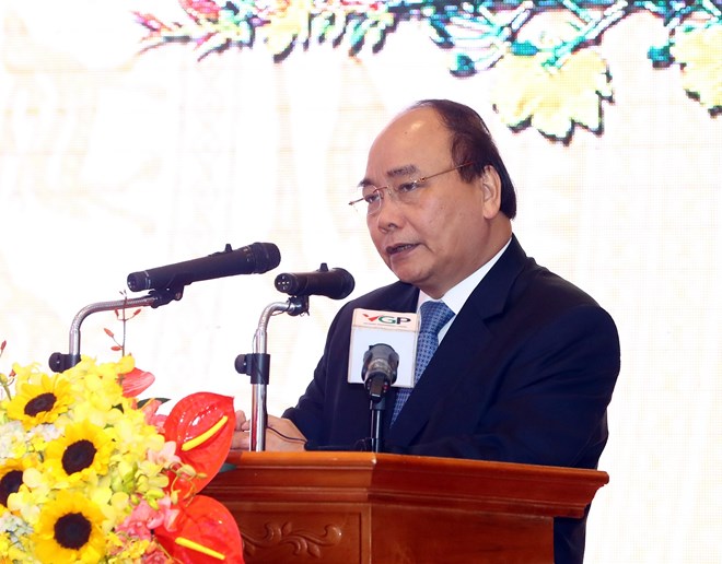越南政府总理阮春福1月23日在河内出席政府和政府办公厅前领导,政府办公厅离退休干部代表见面会。