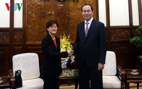 国家主席陈大光表示,越方支持新方扮演好2018年东盟轮值主席国的角色,加强东盟内部合作,推进团结统一,提升东盟的核心作用。国家主席陈大光相信,凯瑟琳•王大使将全力以赴加强越新战略伙伴关系。越南有关部门将与凯瑟琳•王大使紧密配合推动越新关系深入务实发展。