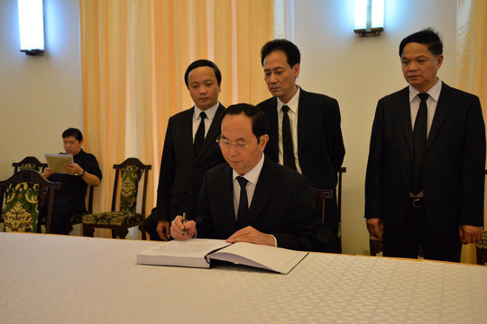 以国家主席陈大光为首的代表团在吊唁薄上留言(图:越通社)