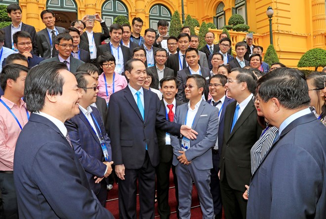 越南国家主席陈大光与出席越南革新创新网络连接活动的100名科技领域先进代表8月18日举行见面会。