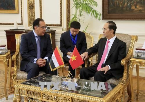 国家主席陈大光(右)会见埃及总理穆斯塔法·马德布利(图:越通社)
