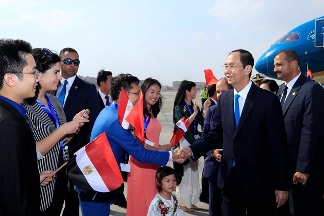 当地时间8月25日下午,越南国家主席陈大光抵达卢克索市机场,开始对埃及进行国事访问(图:越通社)