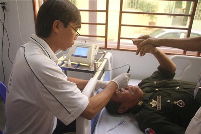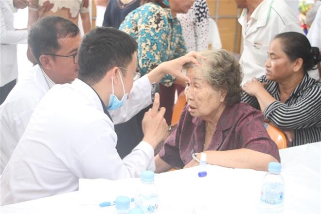 越南医生为柬埔寨贫困患者进行免费眼科检查(图:越通社)