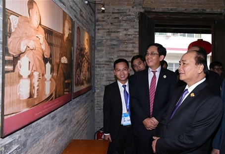 政府总理阮春福9月11日下午走访越中“同志加兄弟”关系的一个历史证据的越南中央学舍区(广西南宁育才学校)。