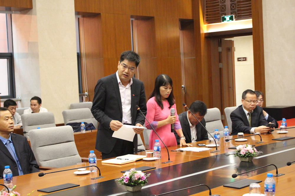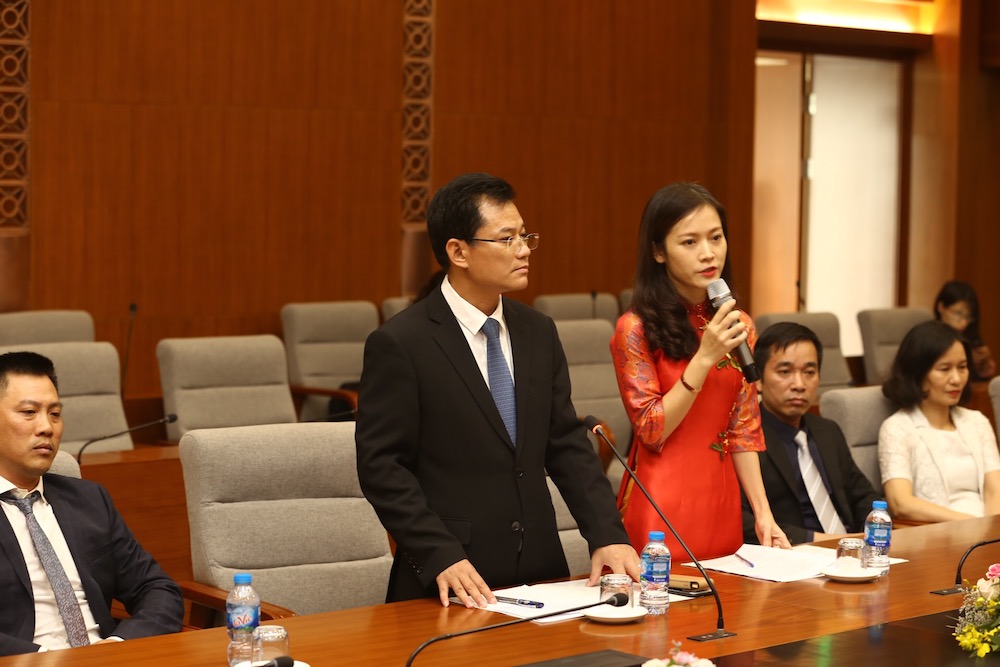 在仪式上,越中友谊宫项目的5个建设单位在越南友好组织联合会副主席敦俊峰和中国驻越大使馆公使衔参赞尹海虹的见证下共同签署越中友谊宫保修期满移交备忘录。