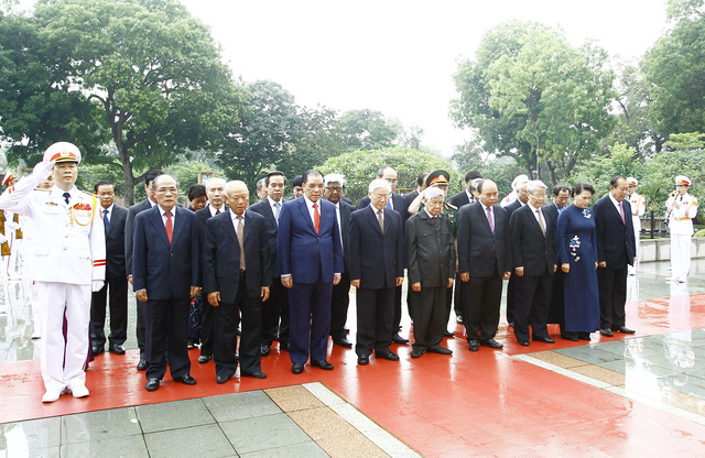 党和国家领导人缅怀英雄烈士并入陵瞻仰胡志明主席遗容