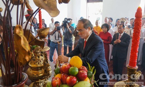 胡志明市领导人向各位英烈敬香(图:congan.com.vn)
