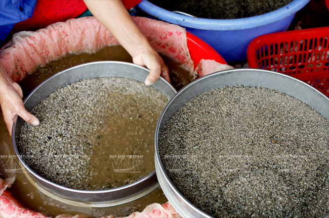 采收后,人们把蛤苗洗净,进行分类(图:越南画报)